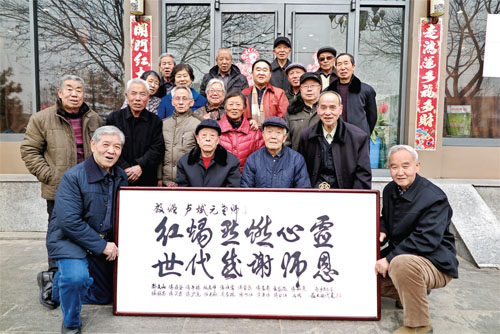 今年86歲盧斌元、83歲的鄭志新兩位老人上個(gè)世紀(jì)五、六十年代在忻府區(qū)董村鎮(zhèn)令歸村小學(xué)擔(dān)任小學(xué)老師,他們可謂桃李滿(mǎn)天下,所教的學(xué)生后來(lái)大多都是機(jī)關(guān)、廠(chǎng)礦、學(xué)校、農(nóng)村的佼佼者,如今這些學(xué)生都已是古稀老人了。2月25日上午,18位接受過(guò)兩位老師教育的令歸村“古稀學(xué)生”特邀恩師座談,共敘尊師重教之情,并向兩位恩師分別贈(zèng)送了題有“紅燭點(diǎn)燃心靈、世代感謝師恩”的書(shū)法牌匾。兩位白發(fā)蒼蒼的耄耋老師十分激動(dòng)。(魯明強(qiáng) 攝影報(bào)道)
