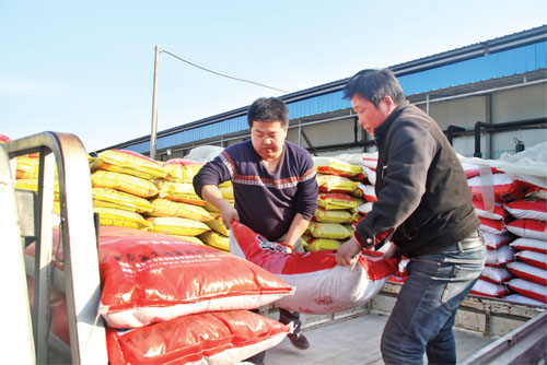 2月29日,原平市農(nóng)業(yè)科技園區(qū)工作人員正在為種子銷售點(diǎn)運(yùn)送化肥。目前,該市村民積極投入到春耕備耕中,及早動手購化肥、備農(nóng)資,為春耕打好基礎(chǔ)。(褚震 攝)