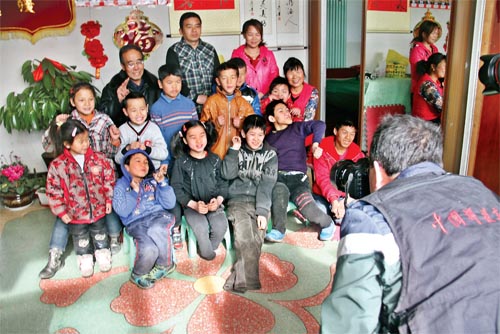 近日,原平市文明辦、市文聯(lián)組織攝影愛好者下基層開展“迎春送祝?!被顒樱瑢θ心7?、身邊好人進行了走訪慰問,并為他們拍攝了全家福照片。圖為攝影愛好者為2014年中國好人、山西省第四屆道德模范陳天文、郭改然夫婦免費拍攝全家福照片。(褚震 攝)