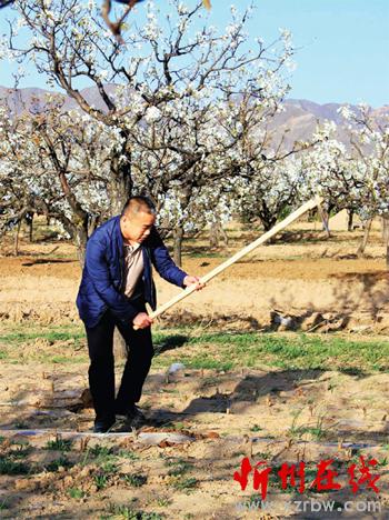 4 月16 日,游人在原平市萬畝梨園中欣賞梨花綻放美景的同時,從農民手中“搶”過镢頭,幫助農民刨地松土,體驗勞作辛苦,分享勞動之美。城鄉(xiāng)一體化建設,新農村景觀吸引了城市市民,節(jié)假日、周末城里人紛紛走出“水泥森林”,深入到農村,不僅享受春光踏青賞花的樂趣,而且在鄉(xiāng)村游中,與廣大農民一起勞動,同吃同住,體會農耕文化之韻。(吉建平 攝)