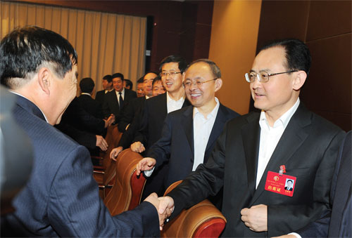 十月十三日晚,市委書記李俊明,市委副書記、市長鄭連生等市領(lǐng)導看望參加市四屆人大一次會議的代表。(劉紀森 攝)