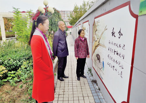 逯家莊村民在文化墻前駐足