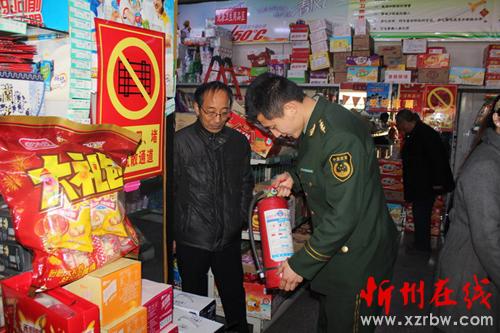 為打擊假冒偽劣消防產(chǎn)品,規(guī)范和整頓消防產(chǎn)品市場(chǎng)秩序,從源頭上消除火災(zāi)隱患,11月9日,河曲縣消防大隊(duì)聯(lián)合質(zhì)監(jiān)、經(jīng)信等部門開展消防產(chǎn)品專項(xiàng)檢查行動(dòng)。此次行動(dòng)重點(diǎn)對(duì)使用消防產(chǎn)品場(chǎng)所內(nèi)關(guān)系到人身財(cái)產(chǎn)安全的疏散指示標(biāo)志、消防應(yīng)急照明燈、消防水帶、水槍和滅火器等消防產(chǎn)品進(jìn)行了抽樣檢查。圖為檢查組認(rèn)真對(duì)超市內(nèi)的消防設(shè)備進(jìn)行檢查。(樊彥勛 攝)