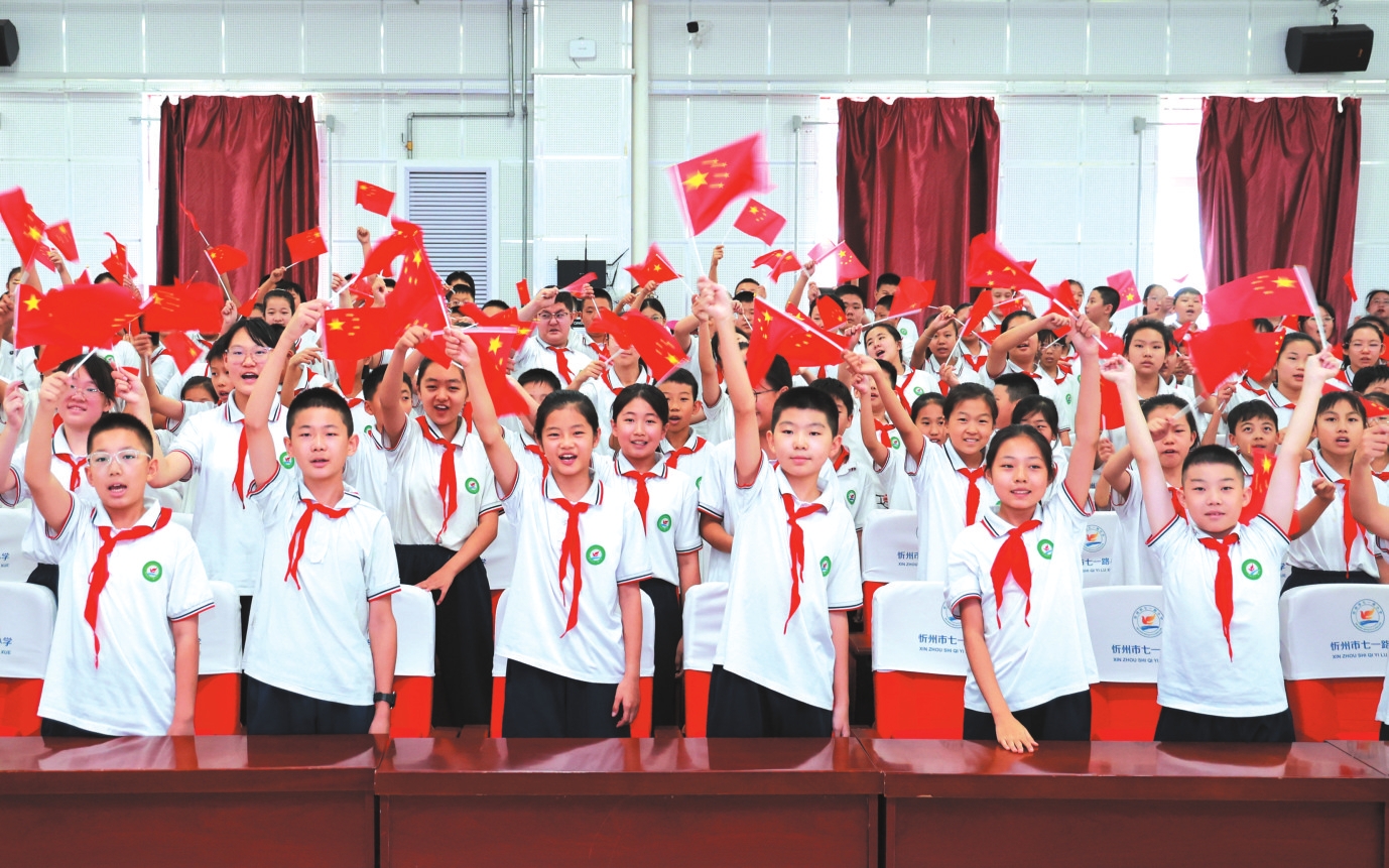 忻州市七一路小學(xué)學(xué)生觀看紀(jì)念大會。張存良攝