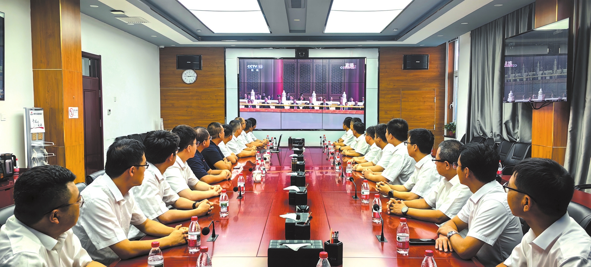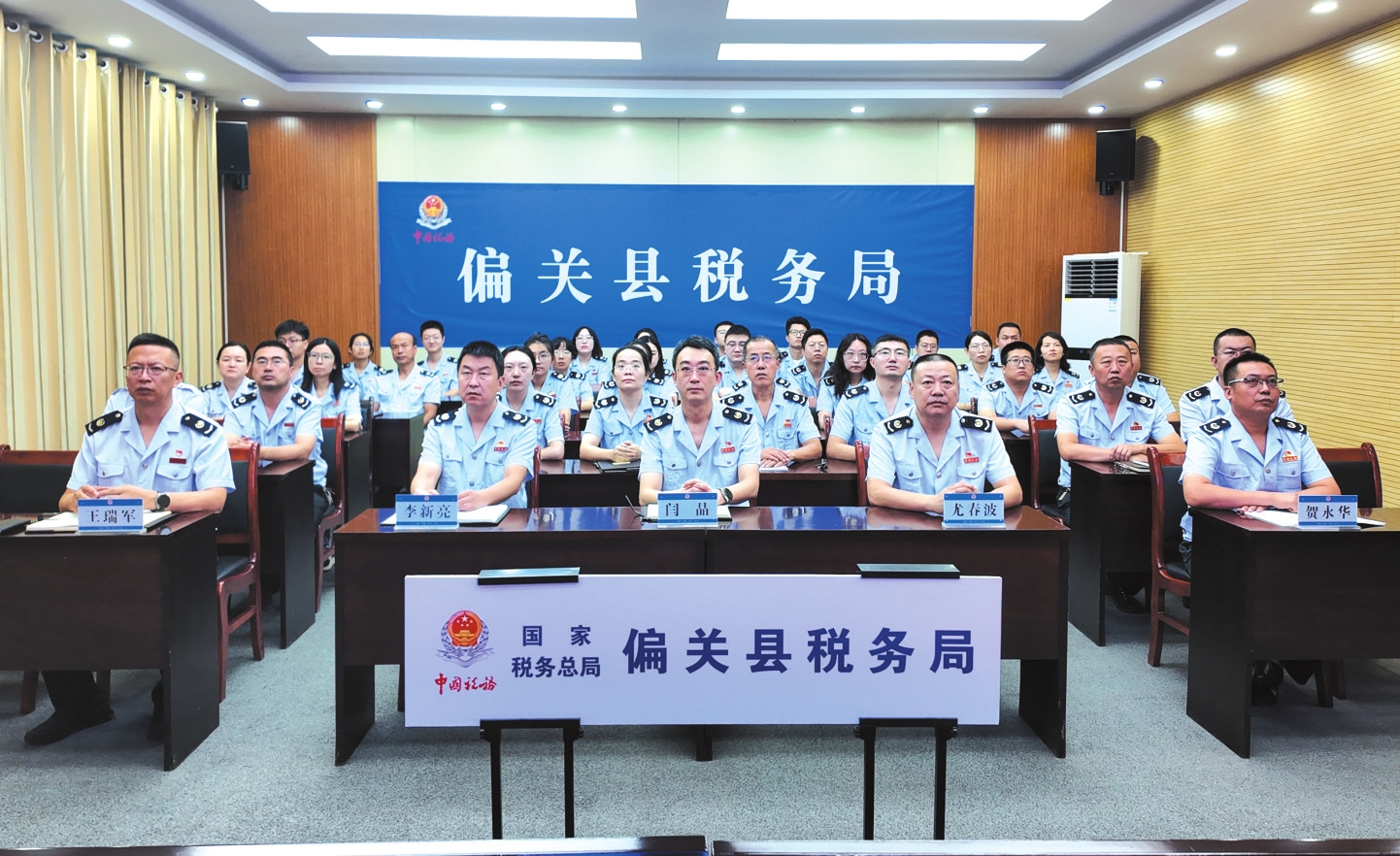 偏關(guān)縣稅務(wù)局黨員干部觀看紀(jì)念大會。賀琦攝