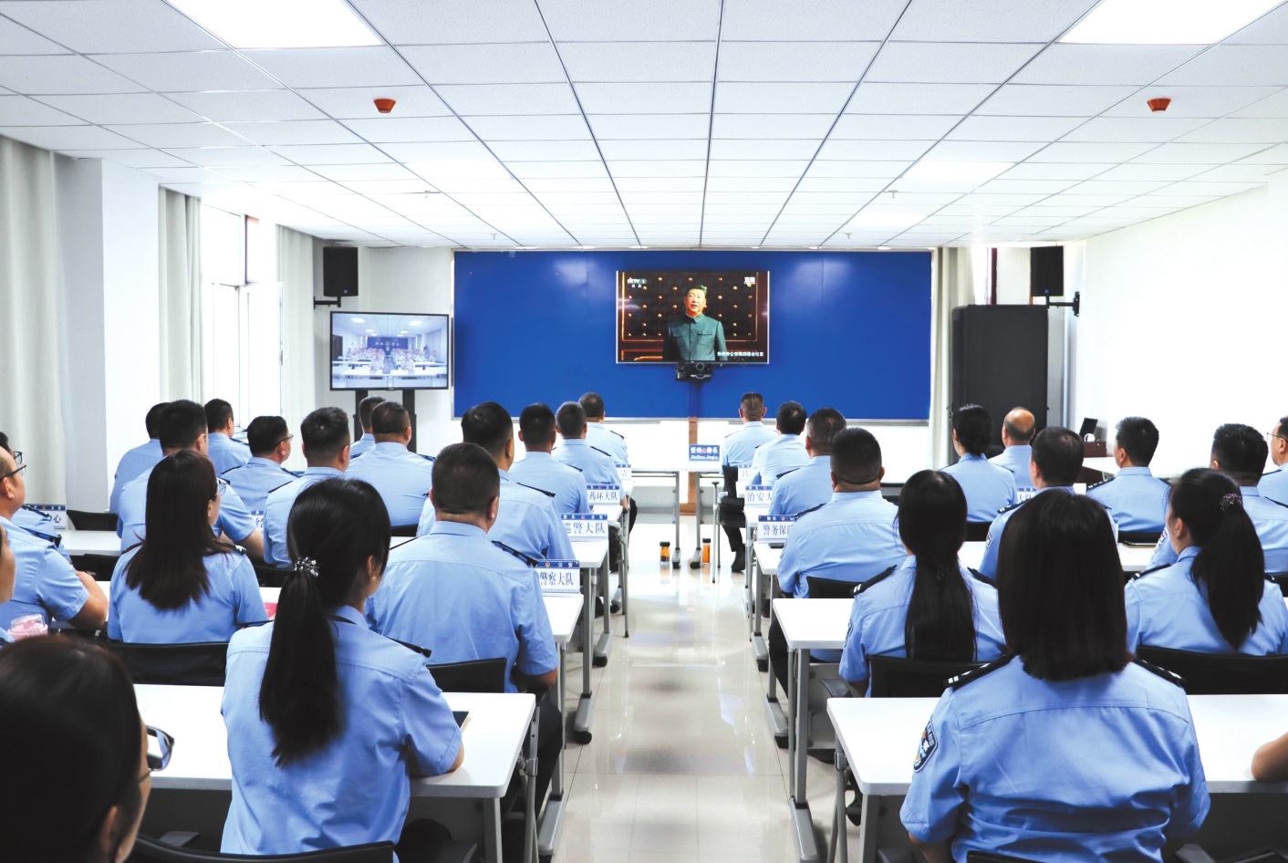 靜樂縣公安局干警觀看紀(jì)念大會。喬秀乾攝