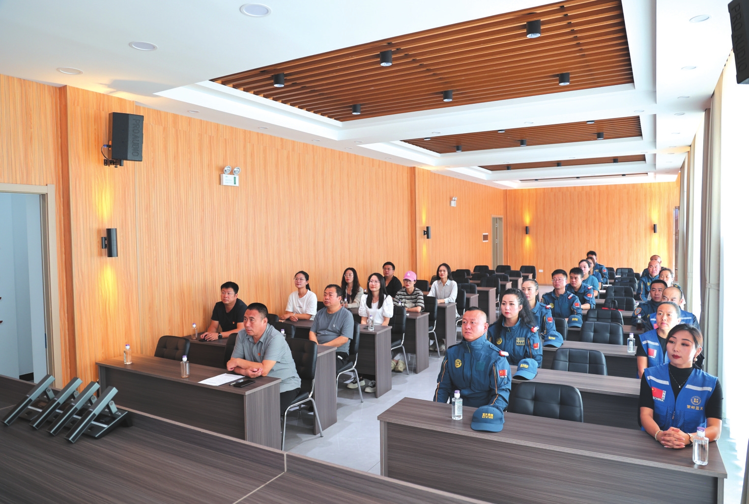 繁峙縣黨群服務(wù)中心干部職工和繁峙縣藍(lán)天救援隊隊員一同觀看紀(jì)念大會。李文浩攝