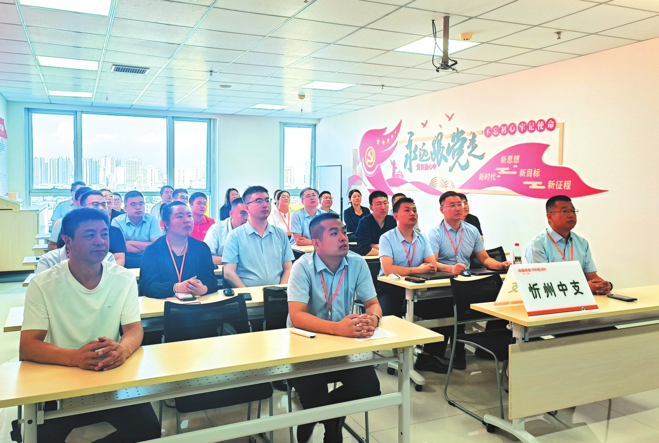 平安財險忻州分公司員工觀看紀(jì)念大會。孫湖英攝