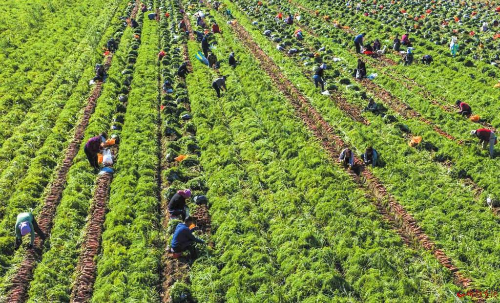 晚秋時節(jié),代縣新高鄉(xiāng)韓街村胡蘿卜種植基地迎來了豐收季。品質(zhì)優(yōu)良的胡蘿卜經(jīng)過簡單處理,將被運往全國各地市場。(王晉東攝)