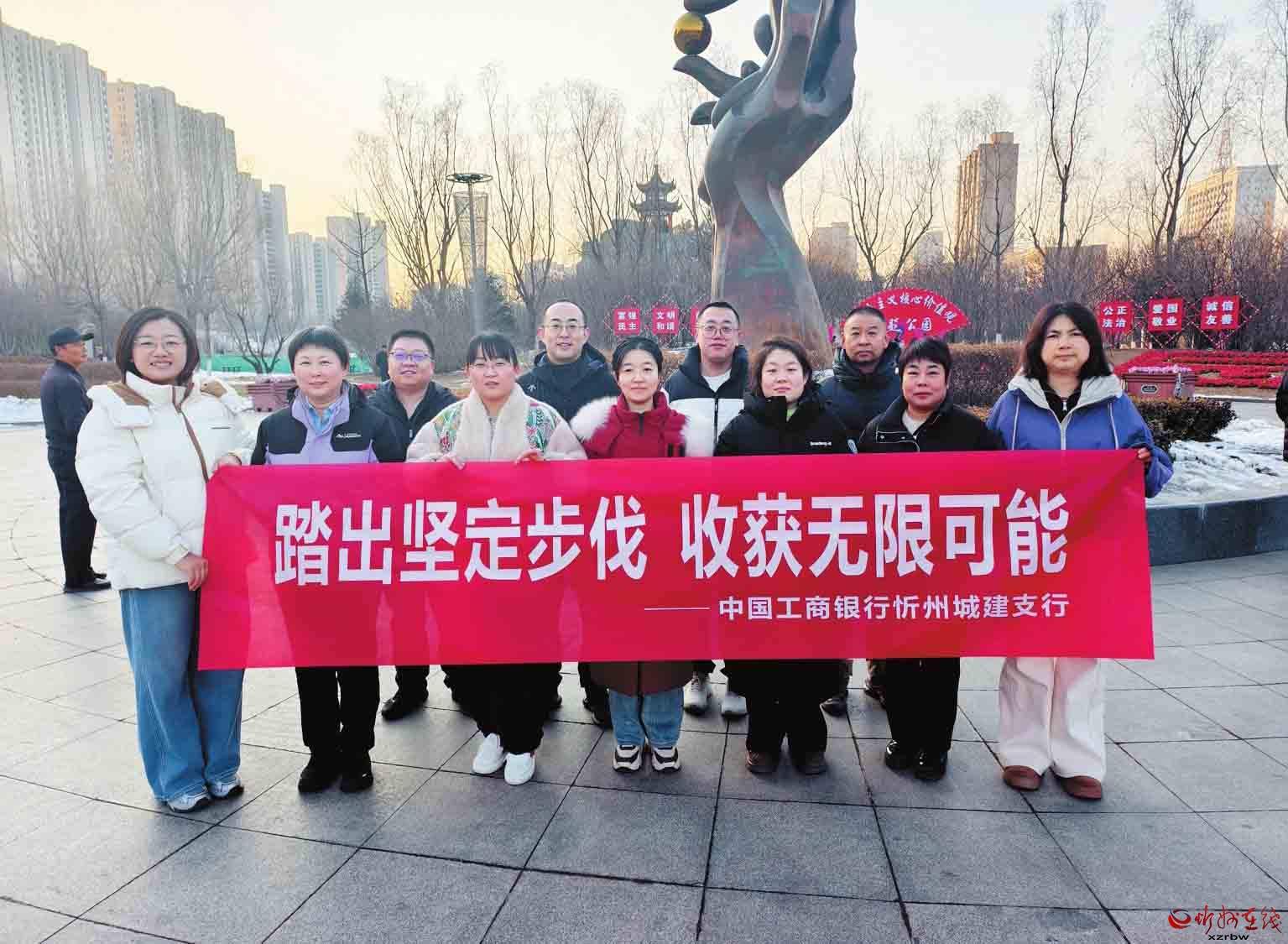 12月27日,工行忻州城建支行組織員工前往市人民公園開(kāi)展健步走活動(dòng)?;顒?dòng)中,員工們精神煥發(fā)、步伐有力,生動(dòng)詮釋了“踏出堅(jiān)定步伐,收獲無(wú)限可能”的主題。此次活動(dòng)不僅展現(xiàn)出支行員工團(tuán)結(jié)進(jìn)取、積極向上的風(fēng)貌,也體現(xiàn)了全行在歲末收官階段腳踏實(shí)地、穩(wěn)步向前的工作姿態(tài)。(本報(bào)通訊員攝)