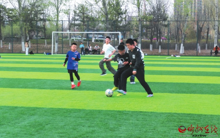 4月12日,云中河景區(qū)足球場綠意盎然,我市中小學(xué)的學(xué)生們正迎著春風(fēng)奔跑、傳球、射門拼搶,額角的汗水與飛揚(yáng)的球衣,勾勒出青春活力的生動畫面。(王 陽攝)