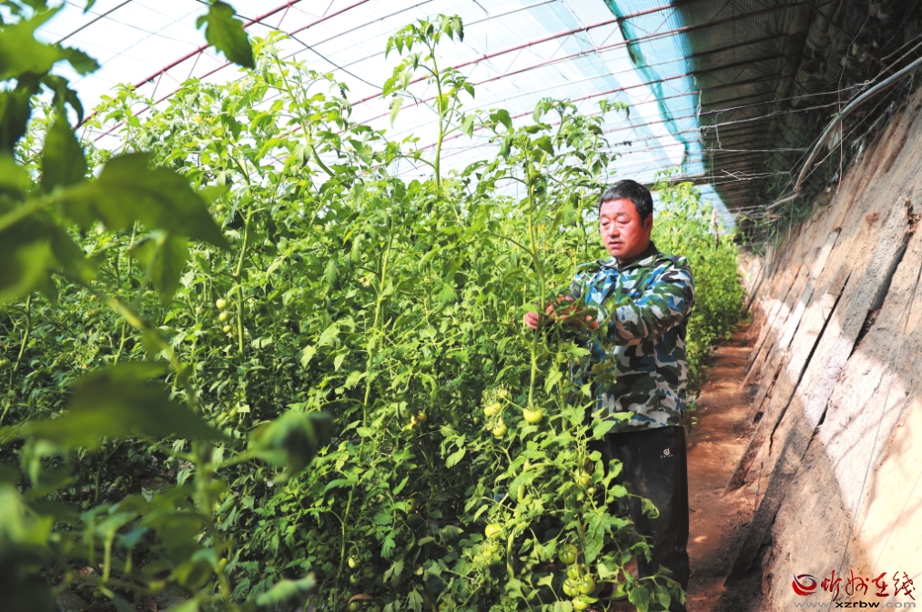 近日,定襄縣富達(dá)瓜菜種植農(nóng)民專業(yè)合作社的40余座果蔬大棚內(nèi)綠意盎然,各類時(shí)令蔬菜生機(jī)勃勃。近年來,當(dāng)?shù)卮罅ν苿?dòng)特色設(shè)施農(nóng)業(yè)發(fā)展,助力農(nóng)戶增收。圖為農(nóng)戶正在管護(hù)西紅柿。(記者 張存良攝)