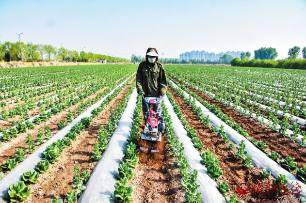 4月23日,原平市新原街道辦新華街的油菜田里,農(nóng)民正操作小型農(nóng)機具開展除草作業(yè)。覆膜油菜長勢喜人,農(nóng)機高效作業(yè),既減輕了人工勞作強度,又為油菜豐產(chǎn)增收筑牢基礎(chǔ)。 (吉建平攝)