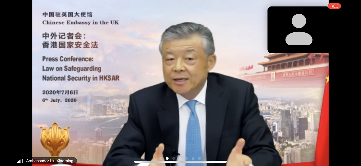 中國(guó)駐英國(guó)大使劉曉明當(dāng)天在中國(guó)駐英大使館舉行在線(xiàn)視頻中外記者會(huì),就香港國(guó)安法闡述中國(guó)政府立場(chǎng)。劉大使表示,國(guó)安立法從國(guó)家層面立法建立健全香港維護(hù)國(guó)家安全的法律制度和執(zhí)行機(jī)制,得人心、順民意,勢(shì)在必行、刻不容緩。