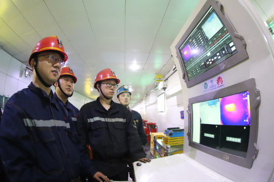 機(jī)電硐室燈光明亮,在一段120米的頭頂軌道上,一個(gè)小小的5G機(jī)器人正在來(lái)回移動(dòng),進(jìn)行360度視頻監(jiān)測(cè)、音頻采集、紅外熱成像?!斑@是無(wú)人巡檢機(jī)器人,還能精準(zhǔn)記錄設(shè)備故障發(fā)生的時(shí)間、地點(diǎn)以及參數(shù)。通過(guò)5G網(wǎng)絡(luò)回傳到數(shù)據(jù)中心?!毙略旱V5G智能化辦公室主任冀杰說(shuō),原來(lái)配電室都是靠人檢查,憑的是經(jīng)驗(yàn);但機(jī)器可以24小時(shí)巡查,不是人力可以比的。“巡檢機(jī)器人代替人在井下巡檢的意義在于,可以逐步實(shí)現(xiàn)井下減人、少人,實(shí)現(xiàn)煤礦安全生產(chǎn)和效益雙贏。”