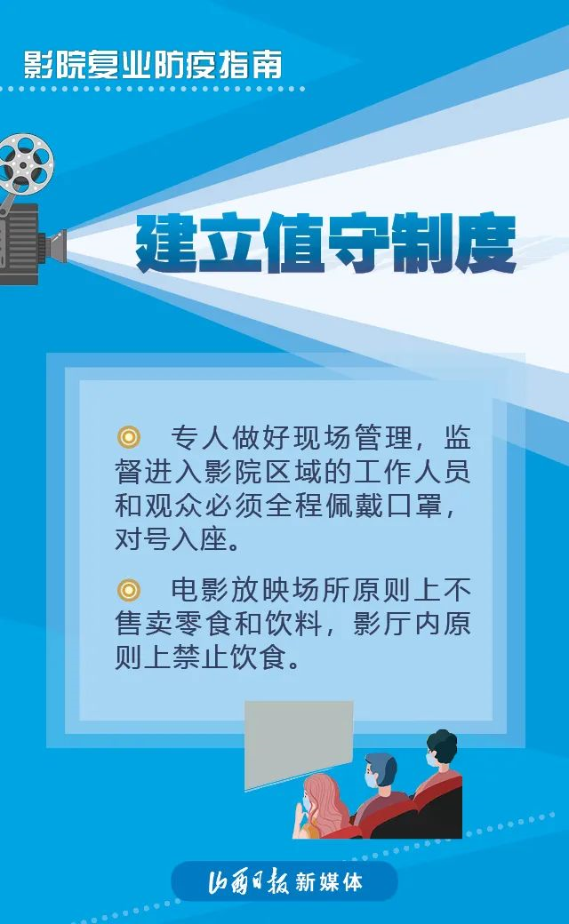 近日,國家電影局發(fā)布《關(guān)于在疫情防控常態(tài)化條件下有序推進電影院恢復(fù)開放的通知》稱,低風(fēng)險地區(qū)在電影院各項防控措施有效落實到位的前提下,可于7月20日有序恢復(fù)開放營業(yè)。具體要求如下↓↓↓
