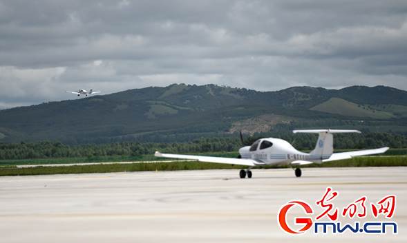 內(nèi)蒙古扎蘭屯成吉思汗機場,飛行學員們正在駕駛訓(xùn)練機進行飛行訓(xùn)練。光明網(wǎng)記者 潘迪攝