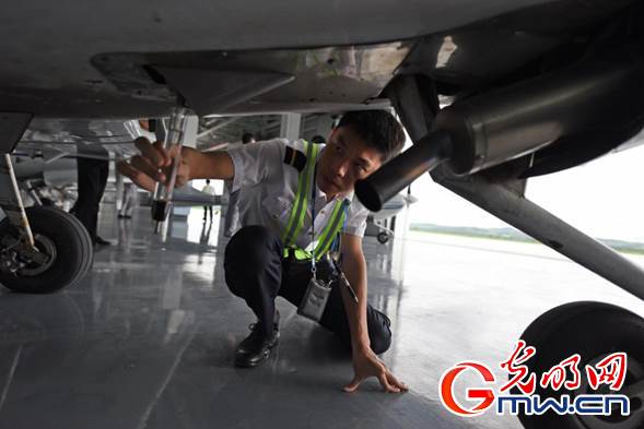 訓(xùn)練機起飛前,飛行學員們正在檢查機身狀況。光明網(wǎng)記者 潘迪攝