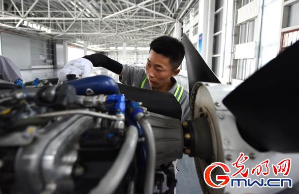 中國民航大學內(nèi)蒙古飛行學院的學員正在進行通用飛行器維修訓(xùn)練。光明網(wǎng)記者 潘迪攝