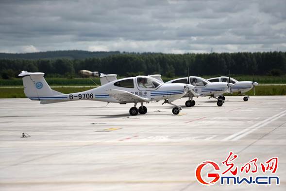 光明網(wǎng)訊(記者 趙艷艷 潘迪 李剛)“嘟嘟嘟……”在內(nèi)蒙古自治區(qū)扎蘭屯成吉思汗機場的跑道上,一架架訓(xùn)練機整齊劃一,蓄勢待發(fā)。沒幾分鐘,隨著飛行學員們熟練的操作,訓(xùn)練機機群直上云霄,在成吉思汗機場上空畫出一道道美麗的弧線。這些年輕的飛行學員們,來自中國民航大學內(nèi)蒙古飛行學院。
