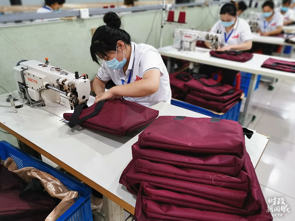 △紅亮箱包有限公司預(yù)計(jì)年產(chǎn)箱包100萬只。(總臺央視記者邢彬拍攝)