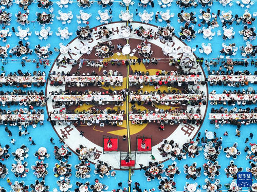 這是第25屆盱眙龍蝦節(jié)歡樂龍蝦宴現(xiàn)場(chǎng)(6月12日攝,無人機(jī)照片)。(新華社記者 李博 攝)