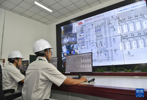 10月15日,在中儲(chǔ)糧成都青白江倉(cāng)儲(chǔ)有限責(zé)任公司,技術(shù)人員在淺圓倉(cāng)工作塔控制中心(中控室)操作糧倉(cāng)入庫(kù)設(shè)備、通風(fēng)設(shè)備和視頻監(jiān)控系統(tǒng)。(新華社記者 劉坤 攝)