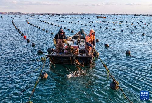 眼下,山東省榮成市海帶播苗作業(yè)全面展開,養(yǎng)殖工人們抓緊時(shí)間進(jìn)行夾苗、播苗等作業(yè)。