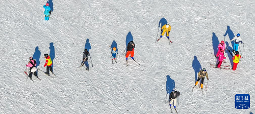 12月6日,滑雪愛(ài)好者在黑龍江省亞布力滑雪旅游度假區(qū)雪場(chǎng)體驗(yàn)滑雪(無(wú)人機(jī)照片)。(新華社發(fā) 原勇 攝)