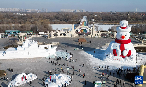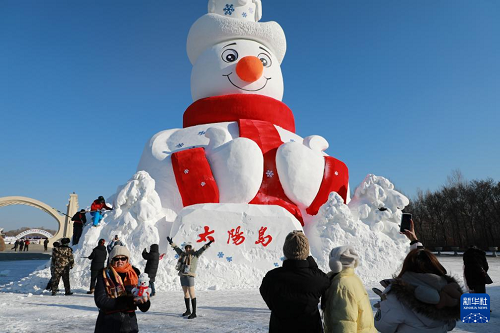 12月9日,第38屆太陽島雪博會標志性雪塑景觀“雪人先生”在哈爾濱太陽島風(fēng)景區(qū)正式亮相。“雪人先生”高23.8米,用雪量達5000立方米。