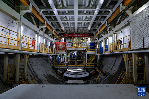 1月6日,“深江1號(hào)”盾構(gòu)機(jī)在珠江入??诤F矫嫦戮蜻M(jìn)。(新華社記者 毛思倩 攝)