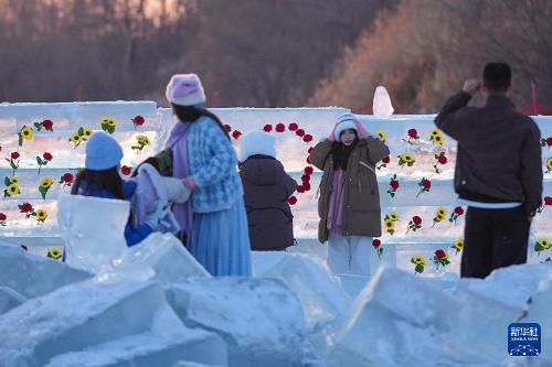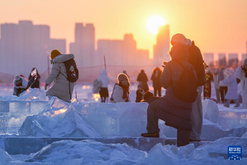 時(shí)下,“冰城”哈爾濱市正值冰雪旅游旺季。松花江哈爾濱段一處采冰場(chǎng),由于大量堆積高純凈度的冰塊,而被游客稱(chēng)為“鉆石海”,成為網(wǎng)紅景區(qū)。只要是晴好天氣,都會(huì)有許多游客來(lái)到“鉆石海”景區(qū),欣賞浪漫的落日美景。