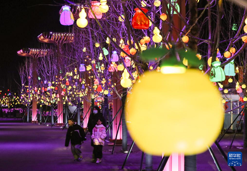 1月24日,游客在“天宮燈會(huì)”上游覽。(新華社記者 單宇琦 攝)