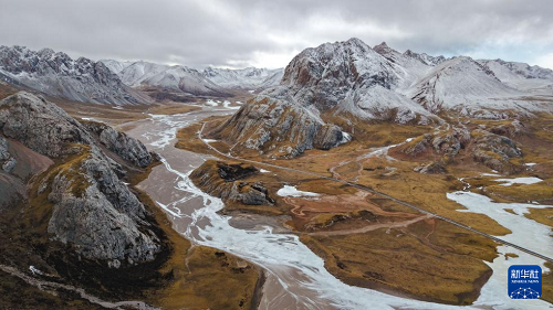 這是1月30日拍攝的青海省玉樹藏族自治州雜多縣冬景風光(無人機照片)。(新華社記者 齊芷玥 攝)