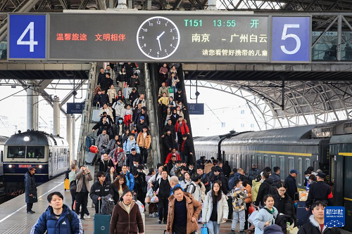 2月13日,旅客在南京火車站乘車出行。(新華社發(fā) 蘇陽 攝)