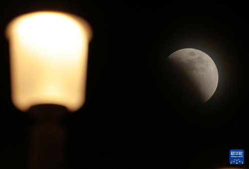 3月3日在黑龍江省撫遠(yuǎn)市拍攝的月全食初虧階段。(新華社發(fā) 李擁軍 攝)