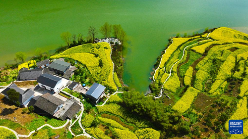 重慶市黔江區(qū)阿蓬江鎮(zhèn)大坪村油菜花開放(3月4日攝,無人機照片)。(新華社發(fā) 楊敏 攝)