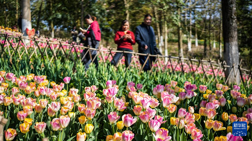 近日,貴州省黔南布依族苗族自治州龍里縣龍架山國家森林公園內(nèi)的數(shù)萬株郁金香競相綻放,吸引各地游客前來游玩賞景。