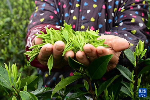 3月29日,在廣西賀州市平桂區(qū)鵝塘鎮(zhèn)盤谷村,茶農(nóng)在采摘明前茶。(新華社發(fā) 黃旭胡 攝)