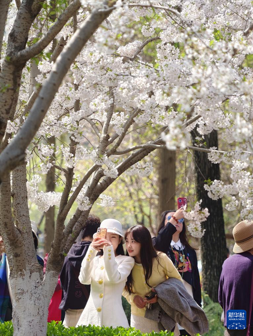 4月1日,游客在北京玉淵潭公園游覽。(新華社記者 邢廣利 攝)