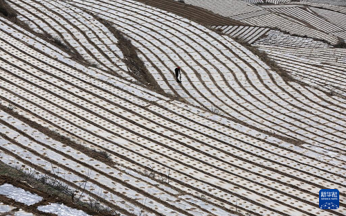 連日來(lái),在黃土高原上的甘肅省天水市武山縣,當(dāng)?shù)剞r(nóng)民抓住近期降雨較多、土壤墑情好的有利時(shí)機(jī),及時(shí)整地、施肥、覆膜保墑,覆膜后的山地梯田成為黃土高原上一道亮麗的春日風(fēng)景。