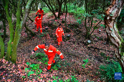 森林防火隊員們在貴州百里杜鵑管理區(qū)金坡景區(qū)巡邏,排查森林火災隱患(4月2日攝)。(新華社記者 楊文斌 攝)