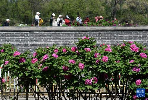 4月20日,游客在圓明園拍攝盛開的牡丹。(新華社記者 羅曉光 攝)