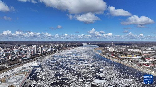近日,中俄界江黑龍江黑河段進(jìn)入春季流冰期。大量冰排浩蕩而下,景象壯觀。