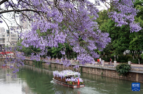 連日來,云南省昆明市教場中路、盤龍江畔的藍(lán)花楹競相綻放,吸引眾多市民和游客前來打卡拍照,共赴紫色花海之約。