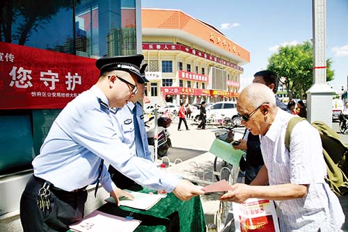 本報訊 5月15日上午,忻府區(qū)公安局在七一北路體育廣場警務(wù)室門前開展了以“與民同心、為您守護”為主題的打擊和防范經(jīng)濟犯罪宣傳日活動,受到市民群眾的歡迎。