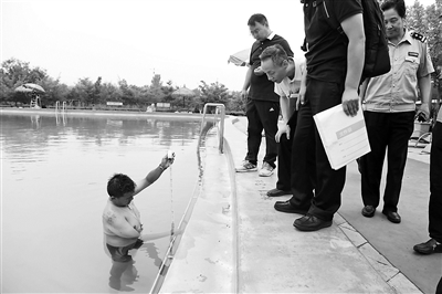 為了了解事發(fā)現(xiàn)場的具體情況,昨天,本案承辦法官前往事發(fā)地,對本案進(jìn)行現(xiàn)場勘驗。根據(jù)現(xiàn)場情況,梅女士溺水的事發(fā)地位于一處露天泳池。經(jīng)勘驗,泳池約為長方形,南北分為兒童區(qū)和成人區(qū)。成人區(qū)水深1.3米,水池為平底,東西長約45米,南北長約30米。泳池四周各有一個救生觀察臺。梅女士出事地點位于泳池成人區(qū)的東南角,經(jīng)工作人員在水中實地測量,水深1.3米,最近的救生觀察臺距出事地點約為10米。