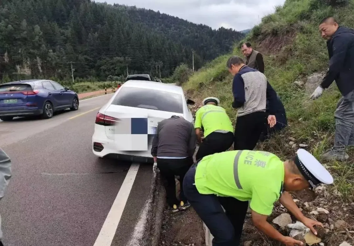 8月10日16時許,正值周六,寧武縣蘆芽山景區(qū)車水馬龍、游人如織。寧武縣公安局交警大隊輔警白濤在懸空村附近巡邏時,發(fā)現(xiàn)一輛白色轎車右側(cè)掉到排水溝里,幾位游客站在一旁,滿臉焦急,隨即上前了解情況。得知嚴(yán)先生一行四人從廣東自駕到山西旅游,慕名來到蘆芽山,因欣賞沿途美景,駕駛不慎,車輛右側(cè)掉到排水溝無法動彈。白濤立即向景區(qū)安保指揮部匯報情況,指揮部迅速指派附近巡防民輔警前往支援,并指令聯(lián)動景區(qū)工作人員共同協(xié)助游客脫困。巡防民輔警和景區(qū)工作人員齊心協(xié)力、互相配合,邊撿石頭墊車,邊喊口號推車。經(jīng)過幾輪嘗試,車子一點點挪動,二十分鐘后,終于將車子從排水溝里推出。此時,民輔警和景區(qū)工作人員已是滿頭大汗、渾身濕透,手上衣服上沾滿泥巴。嚴(yán)先生一行不停地表達著感激之情,白濤同志告訴嚴(yán)先生不要在意,這是寧武公安在景區(qū)的日常工作,每天都會幫助很多受困游客。嚴(yán)先生回到廣東后多次電話致謝,時常想起在寧武的美好旅程,他希望把寧武公安民警忠誠履職、暖心助民的精神和山西人民淳樸厚道的品質(zhì)讓更多人知道。8月16日,他通過忻州公安便民服務(wù)平臺發(fā)出了感謝信。