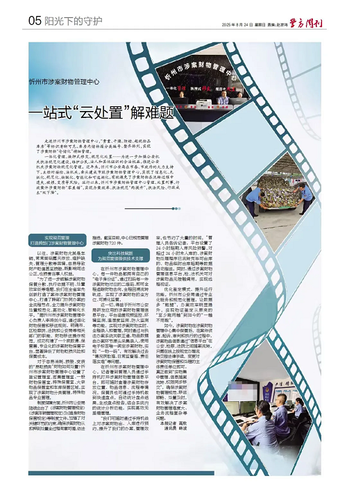 “為了進(jìn)一步破解涉案財(cái)物保管分散、執(zhí)行依據(jù)不明、處置效率低等難題,我們?cè)谌÷氏葎?chuàng)新打造了案件涉案財(cái)物管理中心,打通了跨部門協(xié)同辦案的全流程節(jié)點(diǎn),全力提升涉案財(cái)物處置規(guī)范化、高效化、智能化水平。”據(jù)忻州市涉案財(cái)物管理中心負(fù)責(zé)人李鴻劍介紹,通過細(xì)化財(cái)物保管和移送規(guī)則,明確市、區(qū)檢察院、法院和公安局等相關(guān)部門的職能、財(cái)物移送操作規(guī)范,成功構(gòu)建了一個(gè)底數(shù)清、保管善、專業(yè)化的涉案財(cái)物保管平臺(tái),顯著降低了財(cái)物貶損風(fēng)險(xiǎn)和保管成本。
