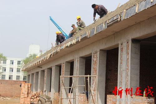 4月12日,原平市新原鄉(xiāng)南灘村投資160萬元的標準化幼兒園全面封頂。入春以來,該市部分農(nóng)村標準化幼兒園陸續(xù)開工建設,讓農(nóng)村兒童也能逐步享受幼兒教育的均衡發(fā)展。(曹申義 攝)